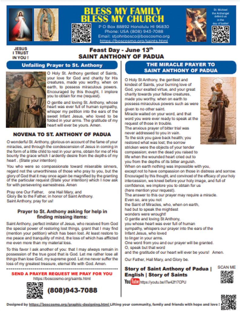 | 12Blessed Jolenta of Poland | 13Saint Anthony of Padua | 14Saint Albert Chmielowski | 15Saint Marguerite d’Youville | 16Saint John Francis Regis | 17Saint Joseph Cafasso | 18Venerable Matt Talbot |
