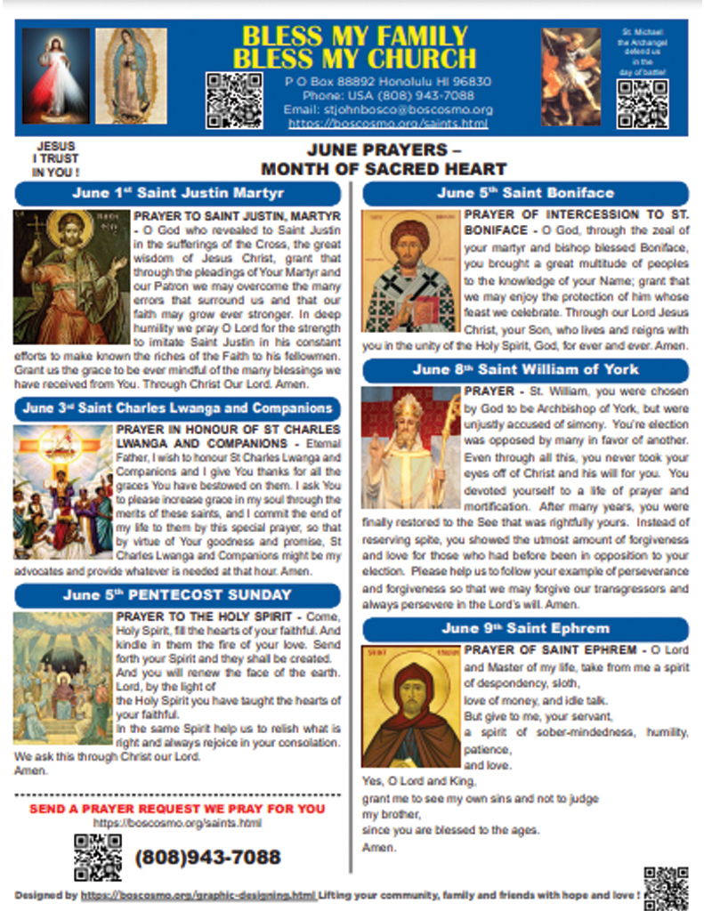 | 5PENTECOST SUNDAY | 6Saint Norbert | 7Blessed Franz Jägerstätter | 8Saint William of York | 9Saint Ephrem | 10Saint Joachima | 11Saint Barnabas |